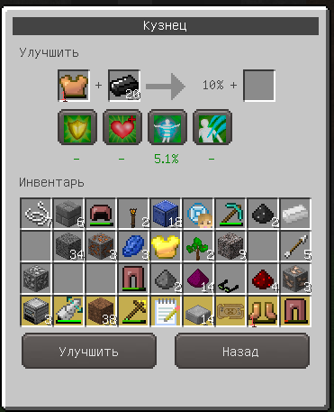В меню Список команд-›Улучшить броню доступен интерфейс улучшения брони, которым может воспользоваться игрок любой профессии: