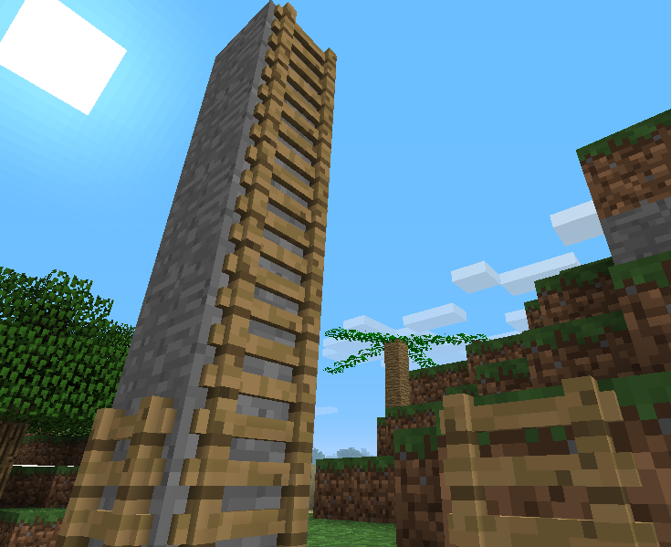 Крепится на устойчивые блоки и позволяет перемещаться в обе стороны по вертикали, а с зажатой клавишей Shift удерживать текущую высоту. В отличие от лианы, подъём осуществляется зажатием клавиши W и удержанием курса в сторону лестницы.