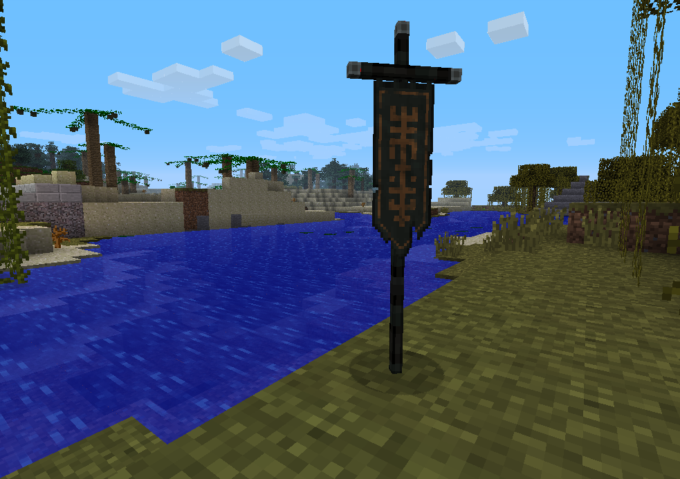 Предмет, при пкм устанавливающий на поверхность блока недвижимую сущность в виде знамени, на полотно которого нанесена символика клана игрока.