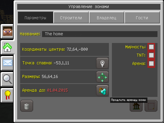 У каждой территории, вне зависимости от типа, всегда есть владелец (тот, кто устанавливал её) и строители (их вписывает владелец зоны).
