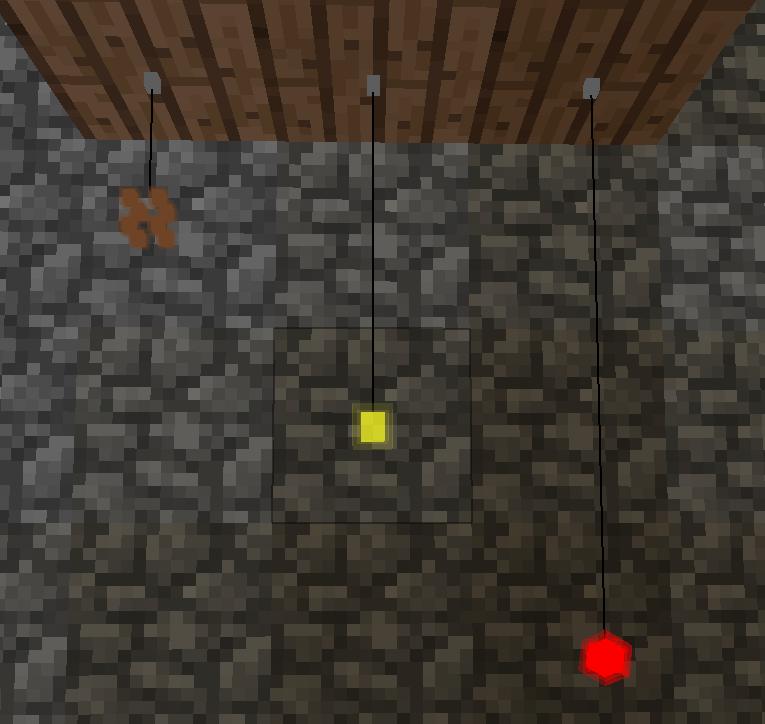 После этого игрушку можно подвесить на нижнюю сторону блока, взяв в руку и нажав правую кнопку мыши. Установка игрушки не произойдет, если для неё не хватает места.
