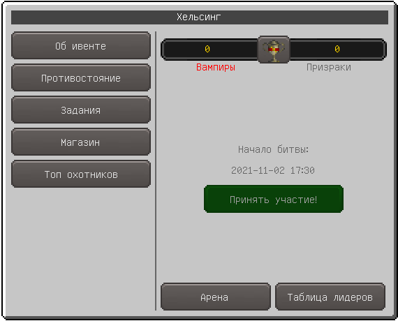 Для того, чтобы присоединиться к битве за ту сторону, за которую вы принимаете участие в противостоянии, необходимо подойти к указанному времени к Хельсингу и нажать кнопку "Принять участие":