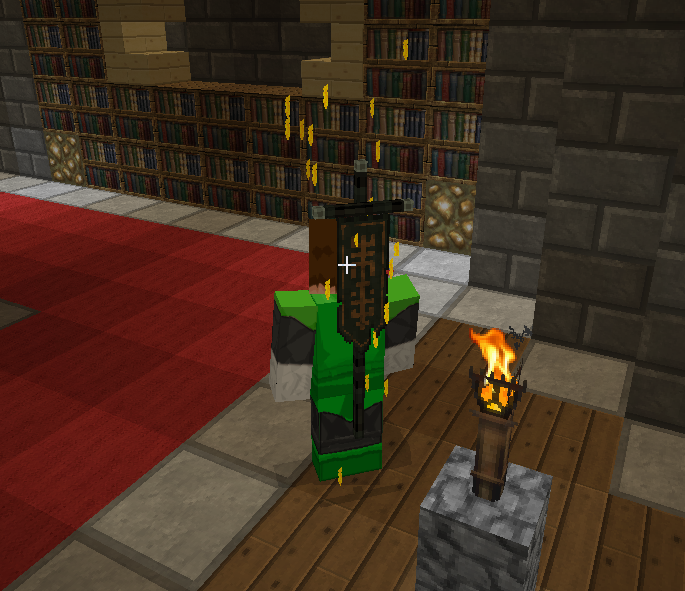 Носимое знамя клана. Имеет 3 положительных эффекта на выбор, каждый из которых действует в радиусе 10 кубов от переносящего знамя. Экипируется в слот сумки, а одеть его может только игрок состоящий в клане.