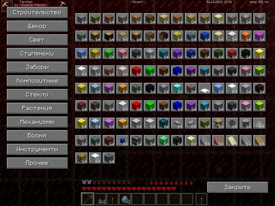 Первое, что требуется знать - почти все ресурсы, в том числе кровь и аккумуляторы, можно добыть нажав на клавиатуре F9 и выбрав из списка. Чтобы разрушать блоки с одного удара, возьмите в F9 посох. Из-за засорения территории, строить вне своих зон нынче запрещено, потому найдите на онлайн карте сервера Build свободное место, направляйтесь на те координаты и ставьте свою зону. Для перехода между мирами сервера им назначены ключи и на спауне стоит адский портал: берёте в руку ключ и заходите в портал. Стройте красоту