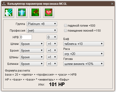 Калькулятор параметров персонажа