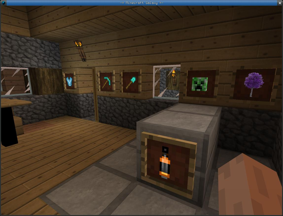 Основная концепция рамки взята из ванильной версии Minecraft. Рамка представляет из себя предмет, аналогичный картине, который может быть повешен на стену. При этом в рамку может быть вставлен любой другой предмет или блок, который будет в ней отображаться. При этом если вставить нарисованную картину , то будет отображаться содержимое этой картины. Если стоять не дальше 3х блоков от рамки и навести на нее указатель, то будет отображено название предмета, вставленного в нее.