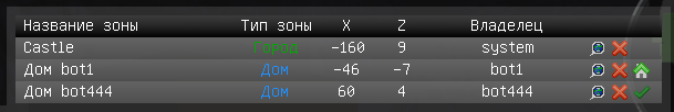 -Robin- У Городового теперь можно явно выбрать зону дома среди тех, в которых прописан игрок. Если у игрока есть своя зона дома, то он всегда будет телепортироваться в нее, иначе в ту, которая указана у Городового. Если зона не указана явно, то игрок телепортируется в первую по списку как и раньше.