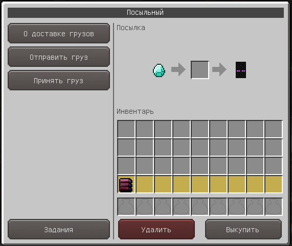 Rowo17-15 GUI курьера так же переработан аналогично GUI торговца Gold, а на странице получения ресурса за плату добавлена кнопка удаления, которая позволяет убрать ресурс из списка без его получения: