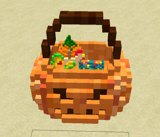 1) Сборка корзинки - особая тыквенная корзинка, которую можно поставить на спавне и собирать сладости от других игроков