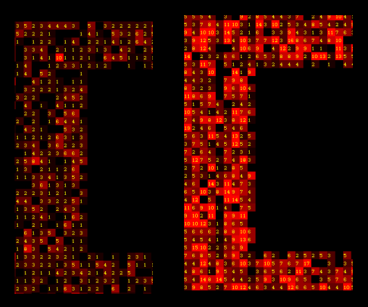 Были найдены проблемы с генераций руд, которые приводили к занижению их реального количества по отношению к расчетному. Для контроля этого параметра, сделан небольшой визуализатор, который показывает количество блоков выбранной руды в чанках, что позволило нам достаточно точно скорректировать её реальное количество. Вот так выглядит визуализация генерации никеля возле спавна Pirate Station до и после коррекции: