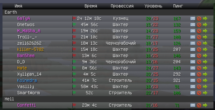 В списке игроков online, который открывается по умолчанию нажатием клавиши F8, убрано отображение счетчиков pvp и смертей игрока и добавлено отображение профессии и уровней: