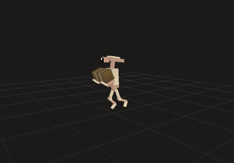 Казалось бы, имея полностью готовую модель с красивыми анимациями, нужно без серьезных тестов вводить ее в игру, чтобы поскорее порадовать игроков. Нет, так не делается. Готовая и одобренная модель может никогда не попасть в клиент, как это случилось с Торговцем. Изначально это был высокотехнологичный робот с полностью круглым колесом и большой мигающей табличкой. Однако в процессе работы над остальными NPC мне показалось, что он не вписывается в стилистику остальных существ Project Galaxy, поэтому было решено отложить его подальше в ящик и заняться моделью более приземленного создания.