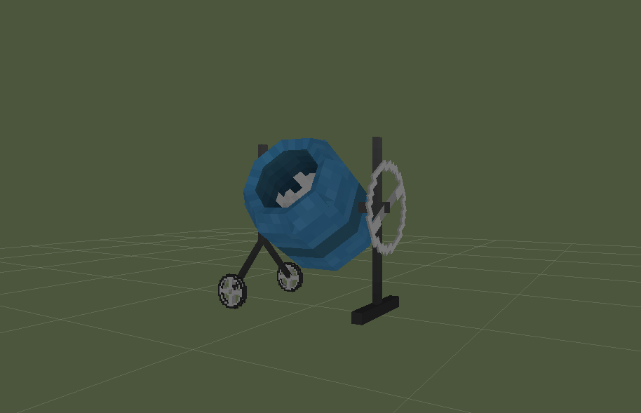 Иногда 3D моделер может сделать не совсем то, что хотел разработчик, и тут нужно находить компромисс. К примеру, в паке дополнений №3 была предложена электрическая бетономешалка. До выдачи задания была создана модель, которая даже обзавелась анимацией и тремя разными текстурами. Немного позже от разработчика последовал комментарий, к которому прилагался скрин предполагаемой структуры для встраивания туда блока бетономешалки, поэтому модель в срочном порядке была переделана и адаптирована под положенное для нее место среди труб и проводов.
