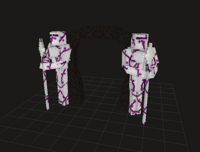 Только строители спавнов смогли бы узнать секрет Portal'a, который на самом деле имеет сразу две головы: на плечах и на пятках. Вторая голова нужна в момент проигрывания анимации с порталами. Движок CraftStudio не позволяет резать боксы на части, чтобы зеркально располагать их у двух порталов сразу, поэтому во время падения одной головы в левый портал, другая из-под ног вылетает через правый портал. Причем погруженная часть одной головы равна появившейся части другой, что создает нужный эффект. Сами порталы прячутся в теле Portal'a и незаметно вылетают из него для открытия.