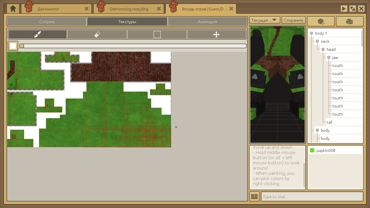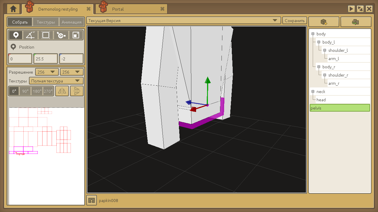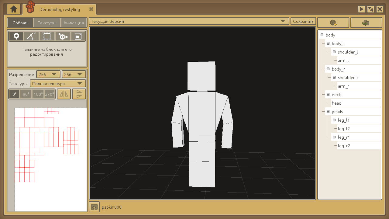 Начинающим 3D моделерам предлагаю создать довольно простую модель в виде базы для рестайлинга Демонолога. Но прежде советую прочитать статьи Скелетная анимация и CraftStudio. В качестве основы взята модель Демонолога 2015 года, которая сейчас выглядит устаревшей.