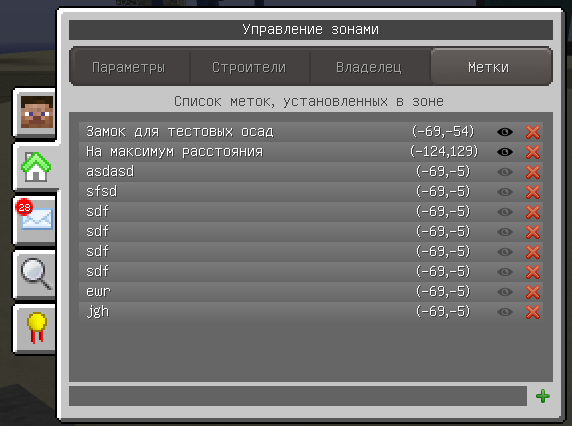 Метки зоны - могут быть поставлены игроком в своей зоне (нужно быть владельцем):