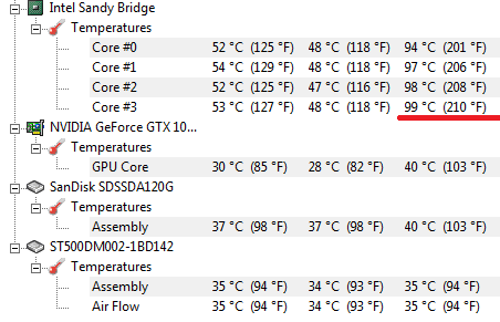 Сбил температуру у себя на проце до 90 градусов, просто закрыв браузер, в комнате стало заметно прохладнее, но зато хоть поиграть можно)