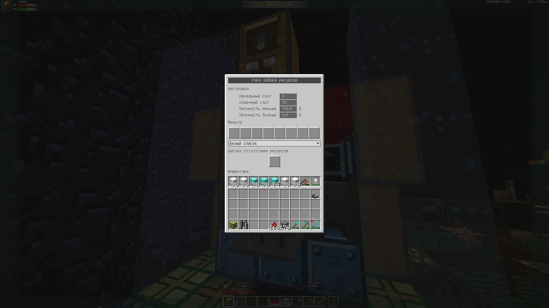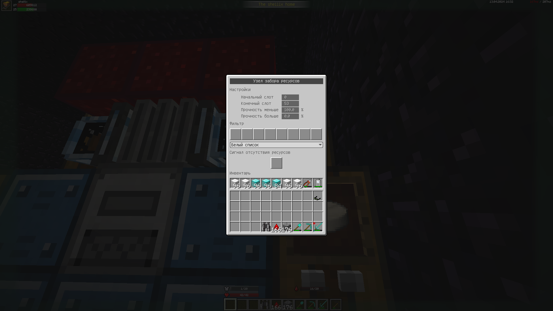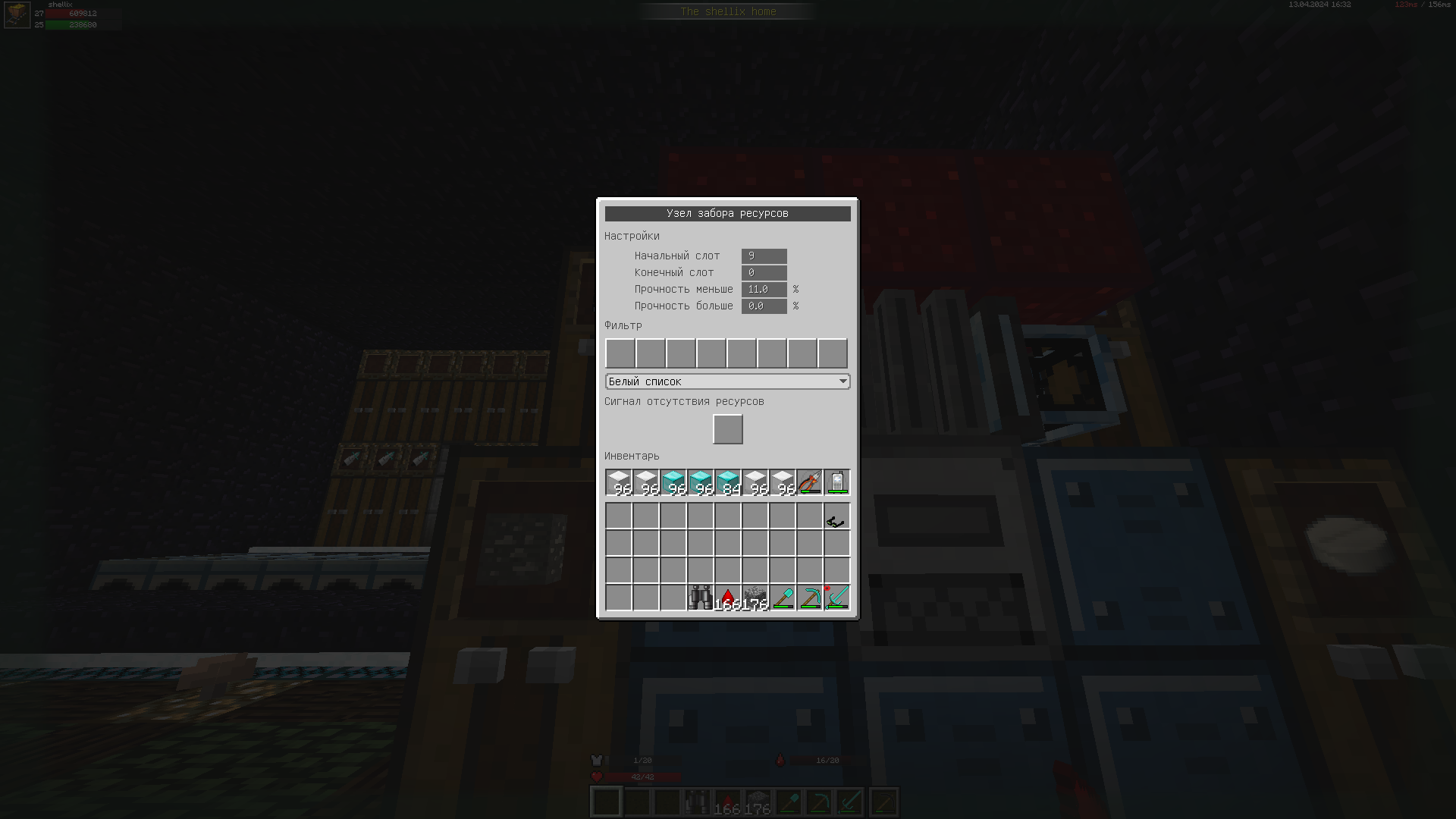 Для того, чтобы ее автоматизироваться, а именно подключить к ней дополнительные сундуки для ресурсов, нужно будет еще: транспортные трубы (6 штук. 4 шт одного цвета, 2 шт другого цвета), узел забора ресурсов (3 шт), узел размещения ресурсов (3 шт), передатчик энергии (1 шт), контейнер плутония (1 шт), ред. кубы (6 шт), двойные шкафы (3 шт).