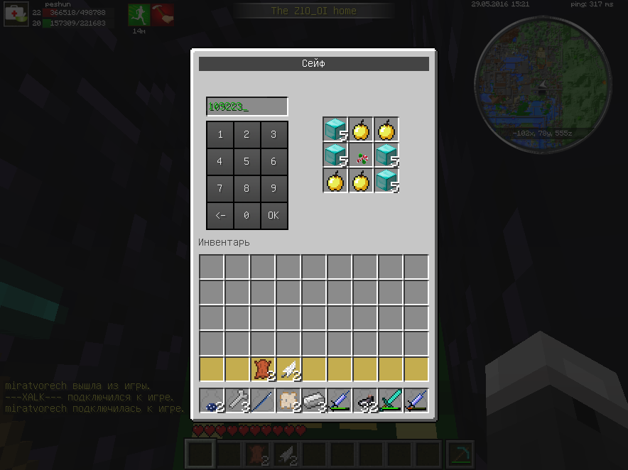 Поменял координаты сейфа на нано! Теперь не нужно ТП! Сейф в 600 кубах от спавна) Координаты сейфа: [ -102,562 ] Удаляем ь, и э заменяем "хомячек" на "z"