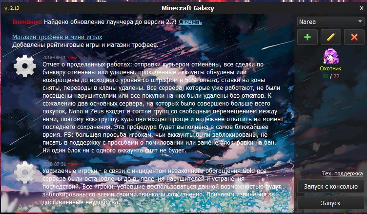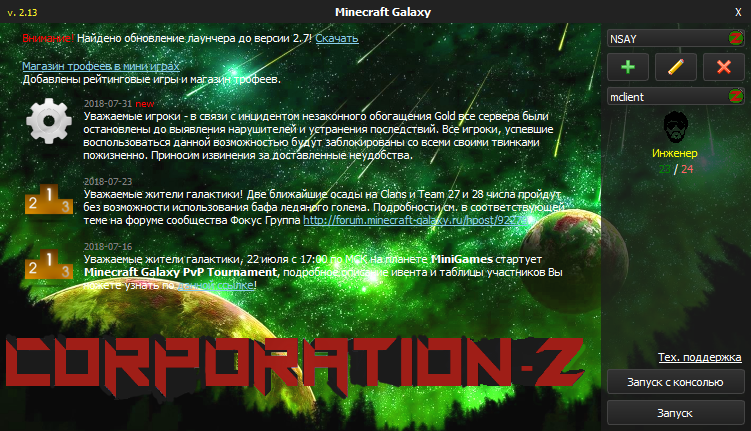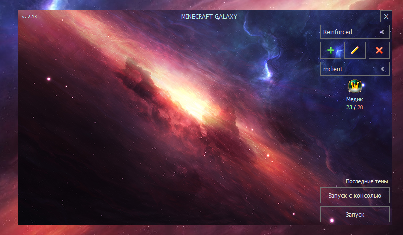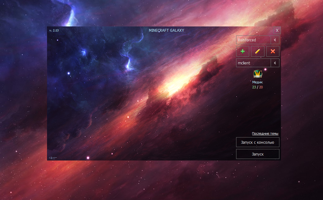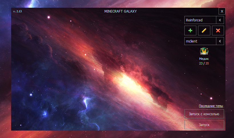 Предлагаю тут делиться темами для нового лаунчера Minecraft Galaxy.