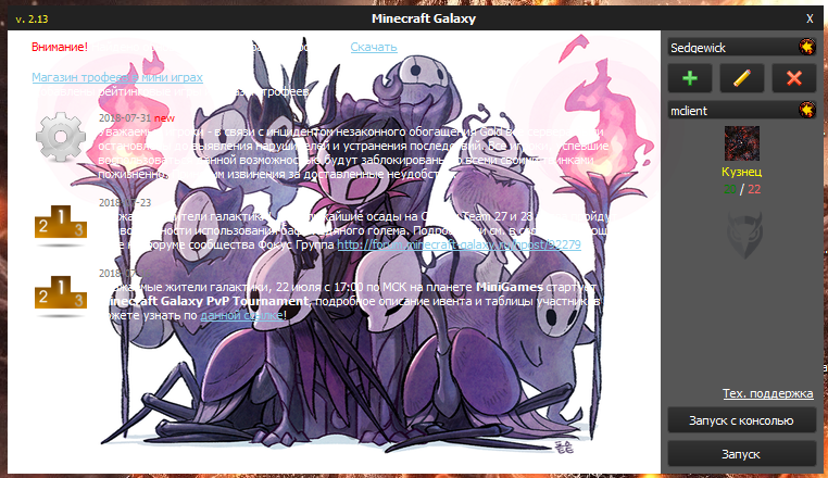 Набросал лаунчер по концепту из [url=http://forum.minecraft-galaxy.ru/post/1975609]#38[/url] поста.