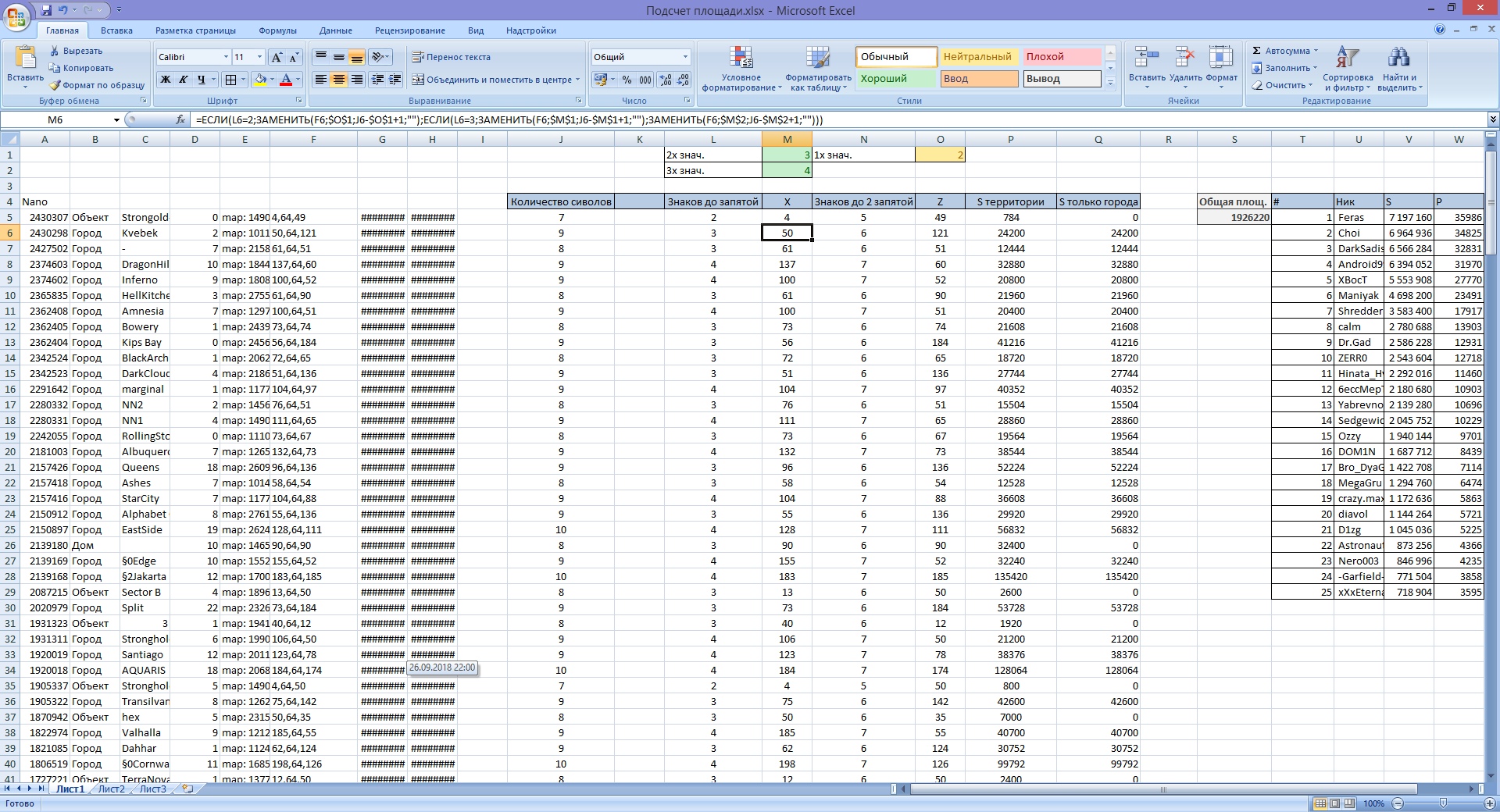 Весь подсчет автоматизирован через эксель, брались размеры города по x,y,z из http://forum.minecraft-galaxy.ru/zones/ и путем некоторых манипуляций выводились размеры только по x и z