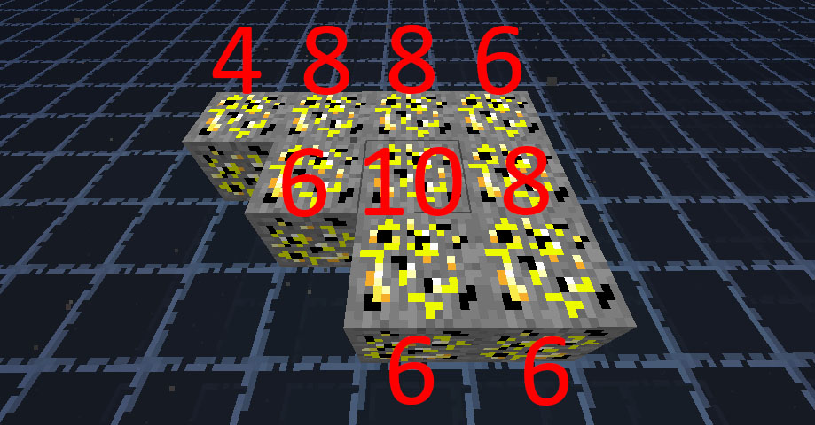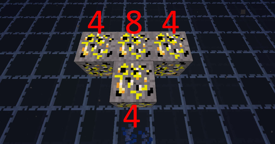От каждого блока урон считается отдельно, но уран усиливается соседями: сам блок имеет урон 2 единицы и каждый стоящий к нему в упор блок урана, в том числе по диагонали, прибавляет столько жеА это значит, что каждый уран имеет 2 единицы урона. Но как только ставишь, например, 2 урана рядом, то их урон получается по 4: 2 урона (1 уран) + 2 урона (2 уран) + 4 урона при их объединении (по 2 урона от каждого передают друг другу) = 8 общего урона или 4 у каждого.