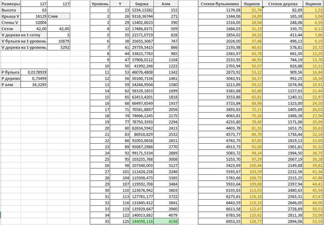 Итого: для 35 этажей спавнера нам понадобится: