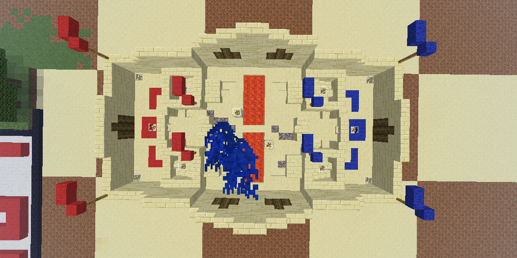 Каждая команда пытается захватить флаг противоположной. Каждый флаг приносит 1 очко, игра длится до 3 очков.