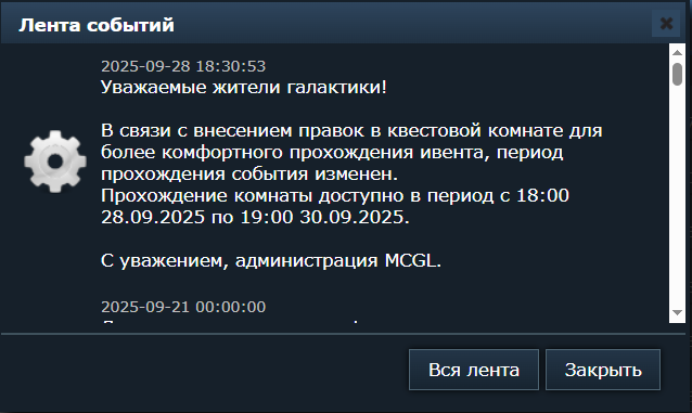 Galaktionik писал(а): На данный момент в квестовой комнате вносятся правки для более комфортного прохождения. В ближайшее время комната будет добавлена, о чем дополнительно оповестят.Оповещать нужно сразу, а мы тут всё ещё ждём новостей....... |