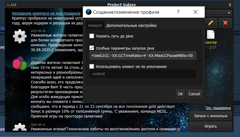 Futanari писал(а): Убери все что ты там накалякал в параметрах запуска и вставь это-XX:+UseG1GC -XX:GCTimeRatio=4 -XX:MaxGCPauseMillis=50 И больше таких проблем не будет ЧТо за параметры запуска??????? И куда это вставлять? Редактировалось 1 раз(а), последний 2025-10-02 12:54:52 |