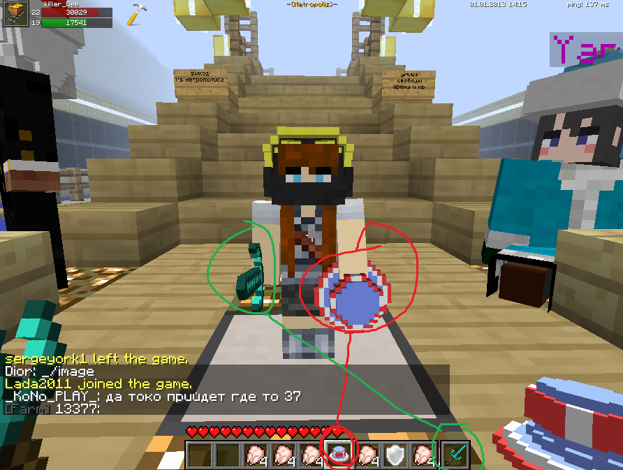 для тех, кто не понял: предмет который находится в левой руке(зеленый цвет) отображается в правой руке, а предмет который в правой руке(красный) отображается в левой руке