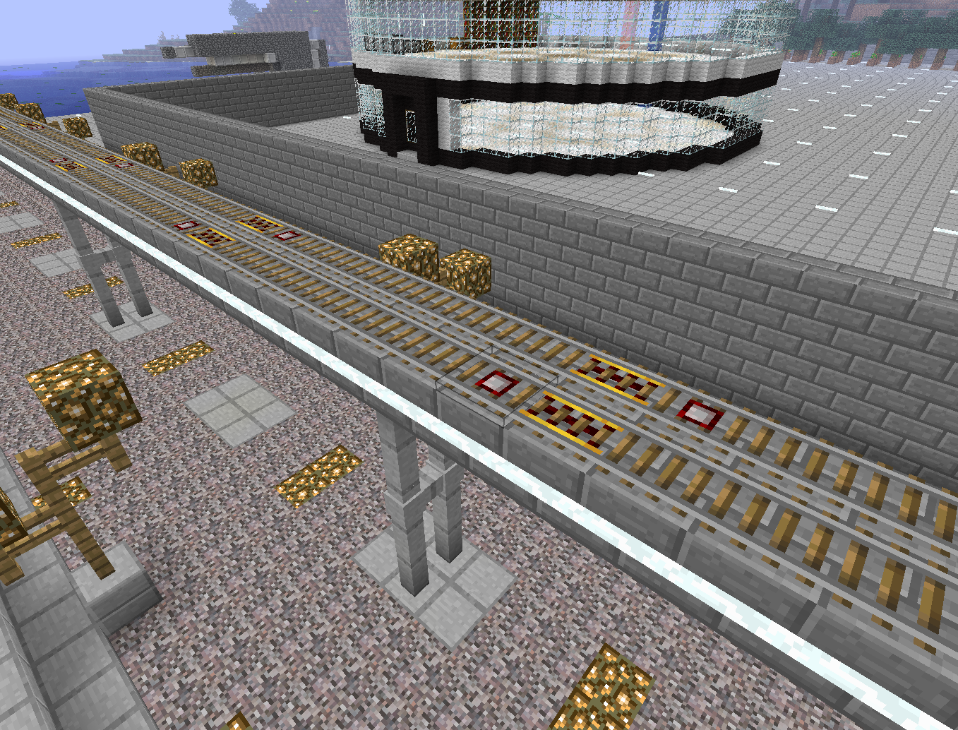 Вот отдыхал я на дачке с лопатой и думал про ЖД систему, пришёл к выводу что нужна главная магистраль, желательно по дорогам фарма, а вот станции должны быть у игроков которые пожелают участвовать. Игрок строит станцию у себя, подводит рельсы и просит строителей дороги подключить их станцию к главной магистрали, на станции устанавливает раздатчик с вагонетками с небольшой оплатой . Единственное нужно разработать удобную и стандартную схему переключения стрелок, а с двухколейной магистралью будет это сложно сделать. В общем дорога идущая по поверхности это шикарно, можно ехать и рассматривать всё. Естетственно надо думать про защиту от дураков ещё.