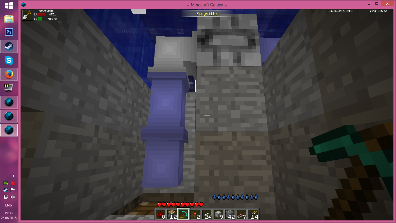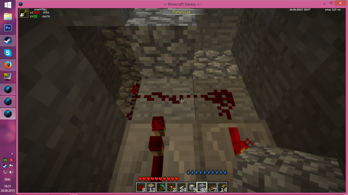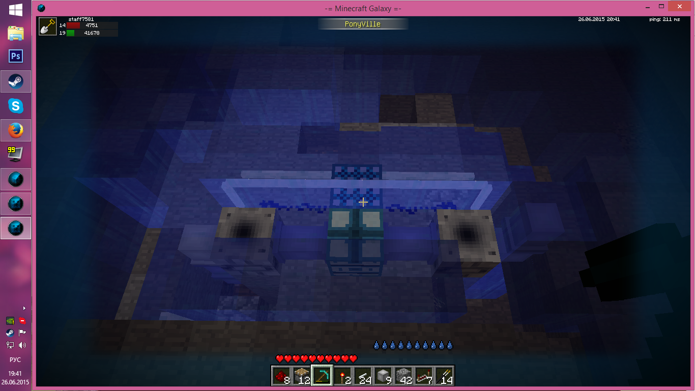5. ждём несколько секунд, пока канистра не перестанет наполняться (счётчик наполненности канистры будет меняться вверх-вниз в пределах одного ведра); проверяем, что она остаётся в этом состоянии и что редстоун-схему не затопило;