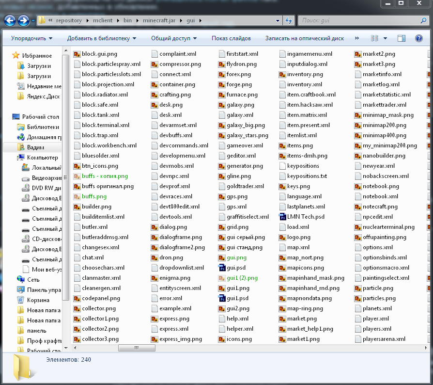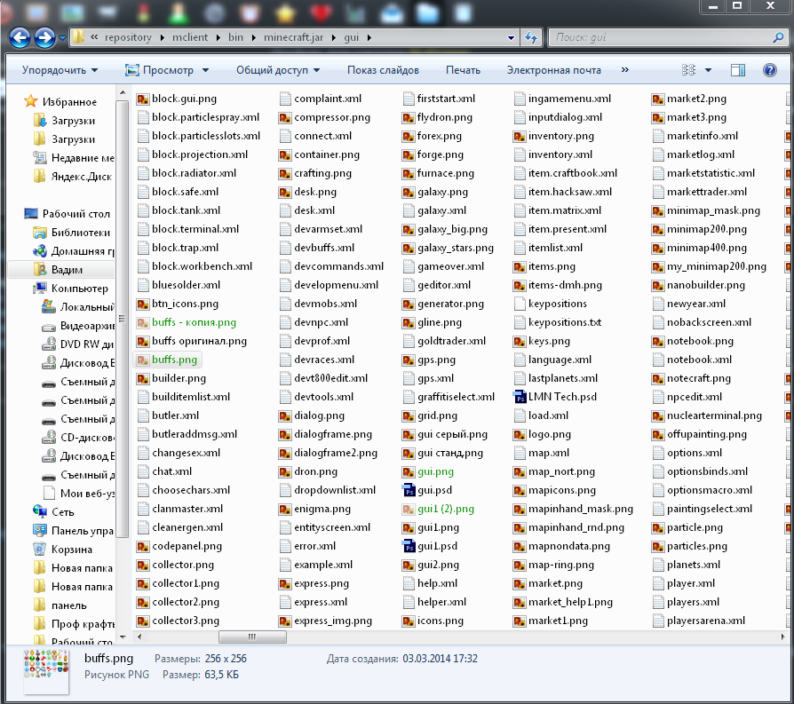 - Скачиваем картинки и сохраняем на рабочий стол. После этого заходим в minecraft.jar/bin/gui и перемещаем файлы туда.