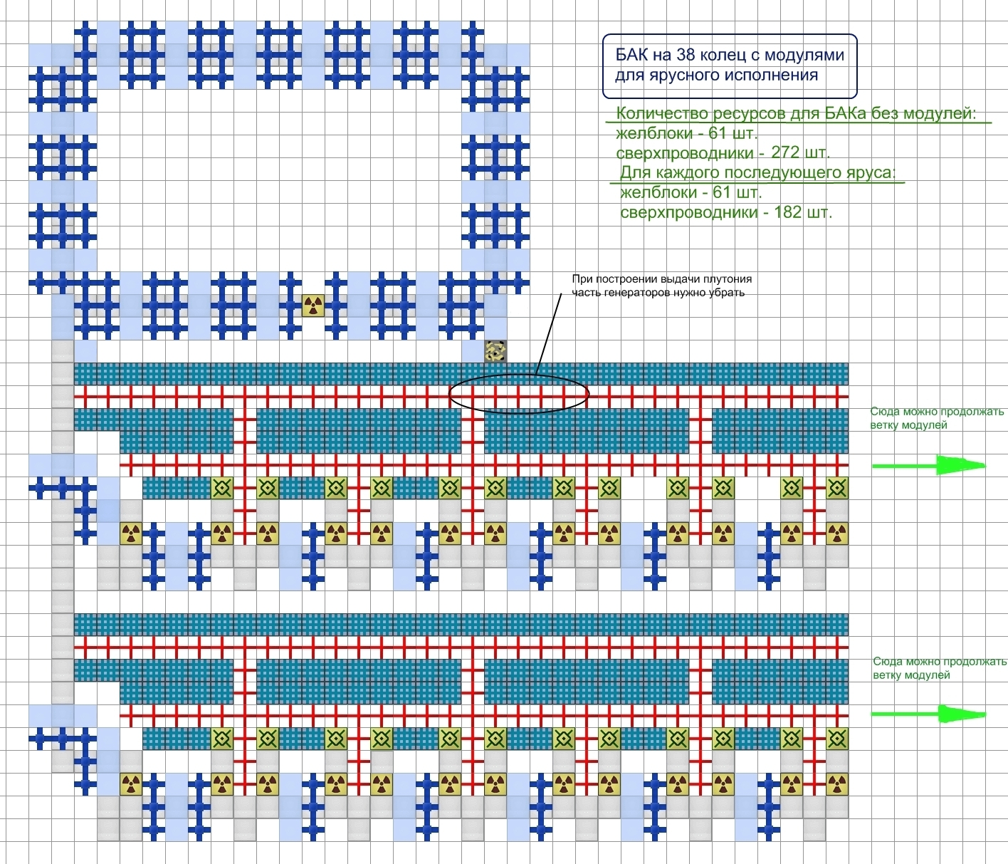 3. Ранее неплохо себя показали в плане экономии места и затраченных на постройку ресурсов БАКи, построенные "бутербродно", т.е. поставленные друг над другом и имеющие общие сверхпроводники и общий столб урана.