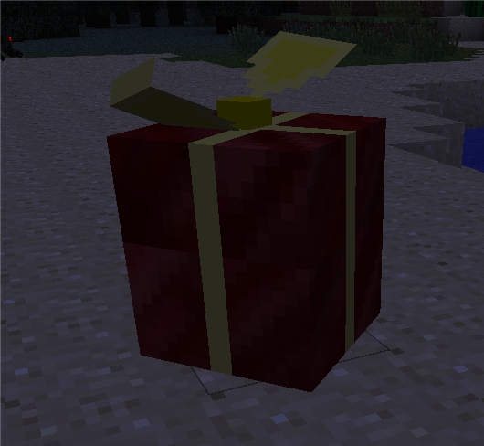 С виду обычный новогодний подарок, раскиданный по всей карте. Игроки не знают, что это злые мобы, поэтому без защиты и оружия идут открывать подарки. При попытке открыть, подарок начинает атаковать игрока.