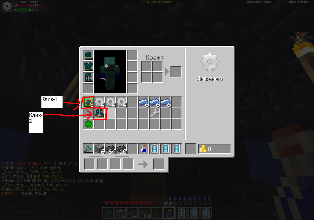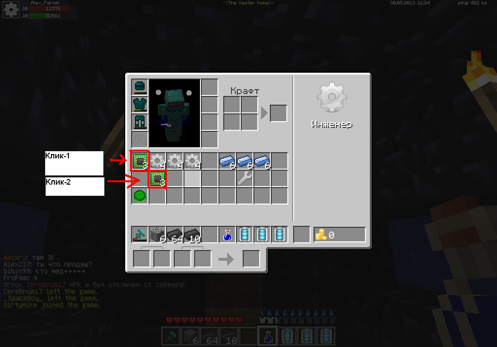 Я вынимаю любую часть брони,держа броню на клике (мышки),нажимаю на любой из предметов который есть в инвертаре и получаю размножение этого предмета на который я нажал,но при этом часть брони пропадает (2).Потом я опять нажимаю на тот предмет с которого я размножил броней предмет,и он возвращается в исходное состояние.