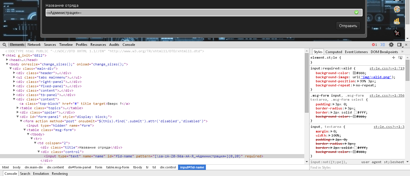 Сейчас можно обойти запрет при создании отряда на спец. символы. Например ←↑↓→ . Они вводятся с помощью сочетания "alt" и цифр с numpad клавиатуры. Через изменение кода страницы можно создавать отряд с спец. символами. Пример: тут.