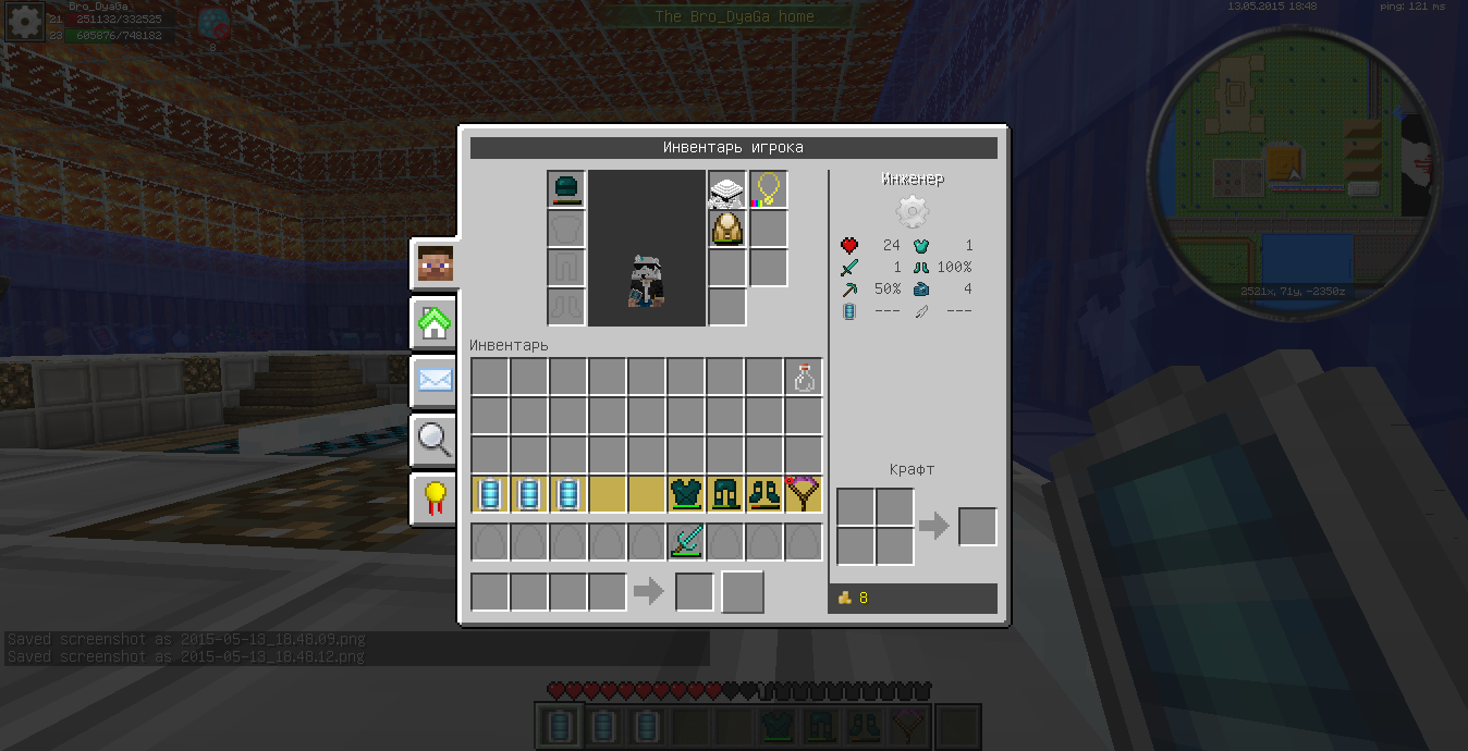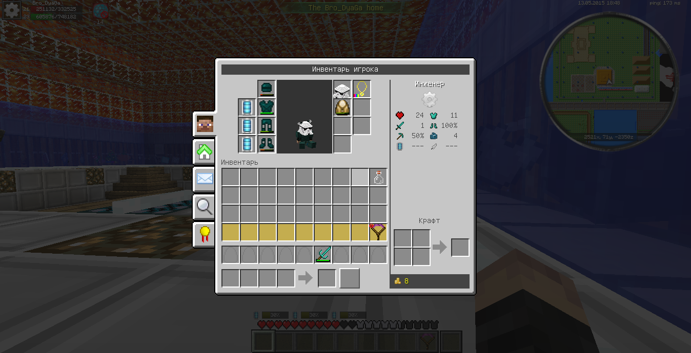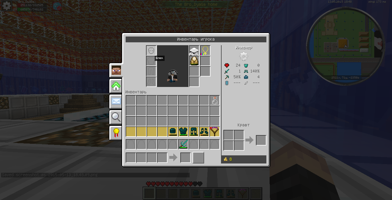 3. Одеваем часть сета. Батарейки появляются в инвентаре.