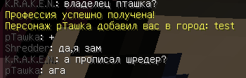 При прописке игрока в город строителем, пишет что в город его добавил "ник владельца города"