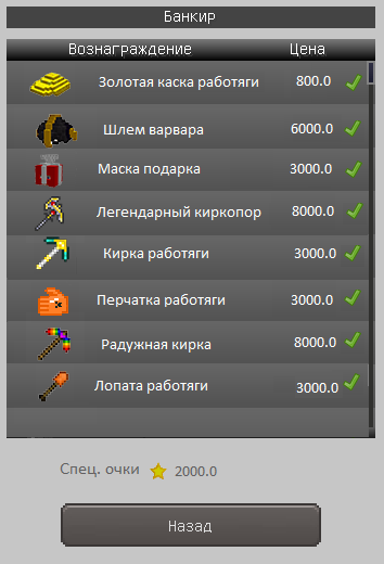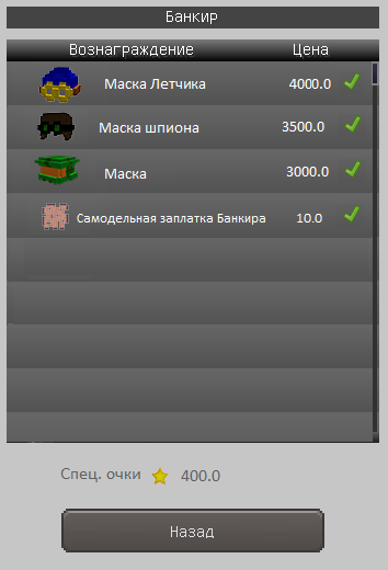 Предлагаю ввести поощрительную систему. За каждый лвл ап игрок будет получать особые очки (с каждым лвлом больше). С помощью данных очков в специальном разделе у Банкира игрок сможет покупать различные маски/предметы.