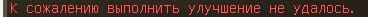 При улучшении брони, в чат выводится сообщение: "К сожалению выполнить улучшение не удалось.", что является ошибкой, ведь после вводного слова "К сожалению" ставится запятая.