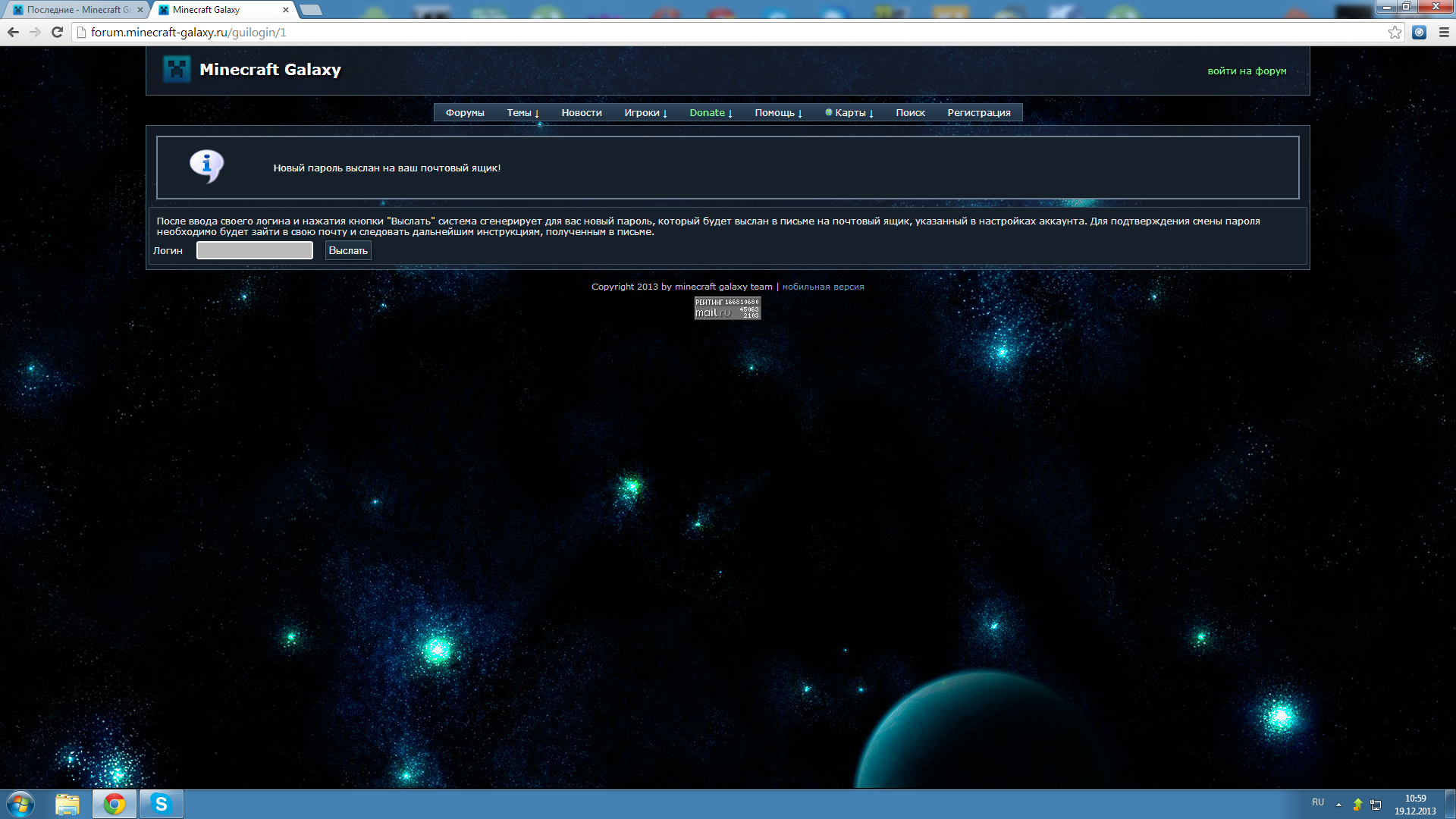 и на какой из почтовых ящиков выслан пароль я не знаю.