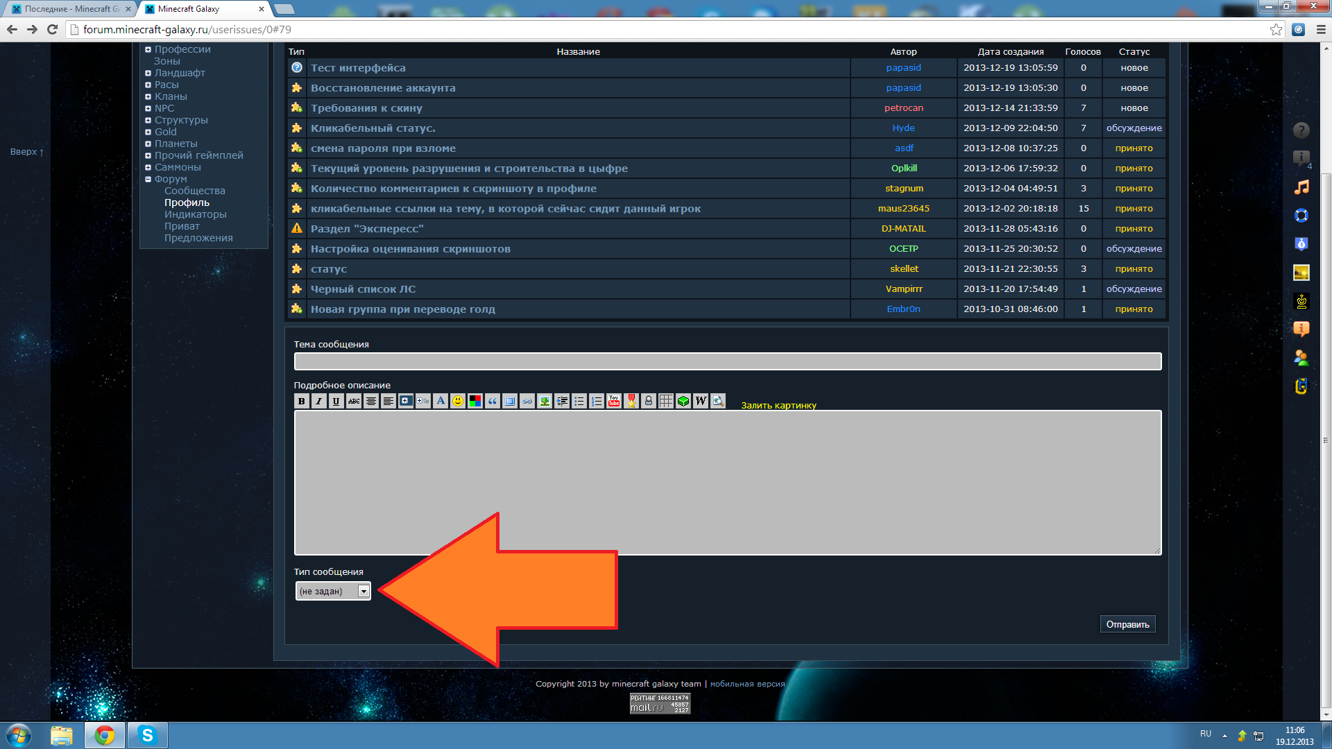 Предлагаю запретить возможность отправлять сообщения/предложения/ошибки без выбранного поля "Тип сообщения"