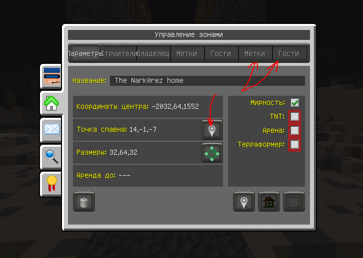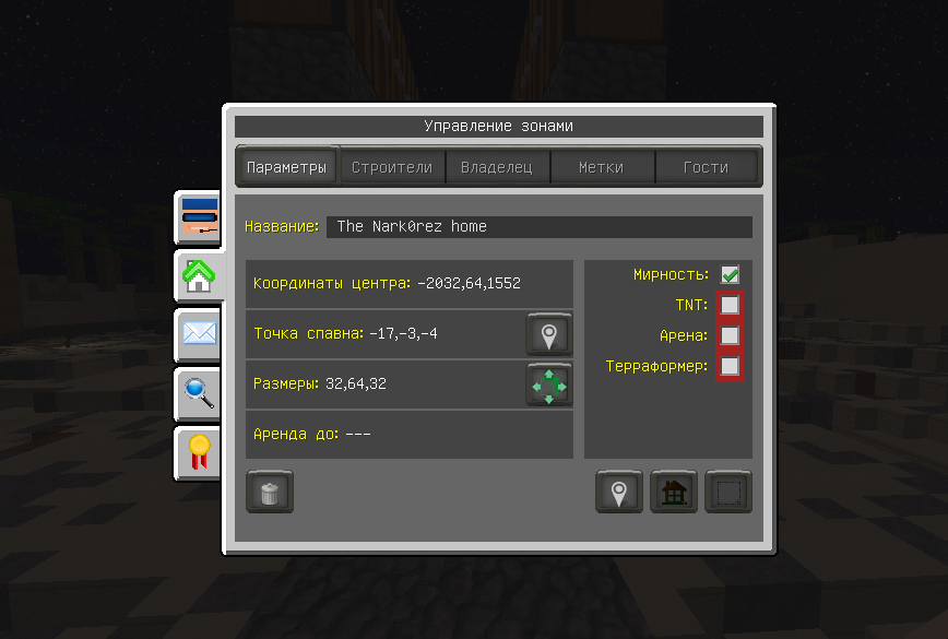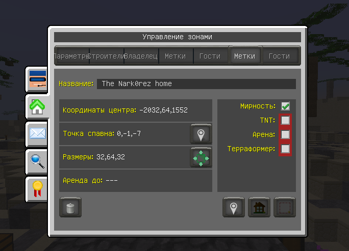 (При активной кнопке "Метки" остаётся интерфейс "Параметры" зоны)