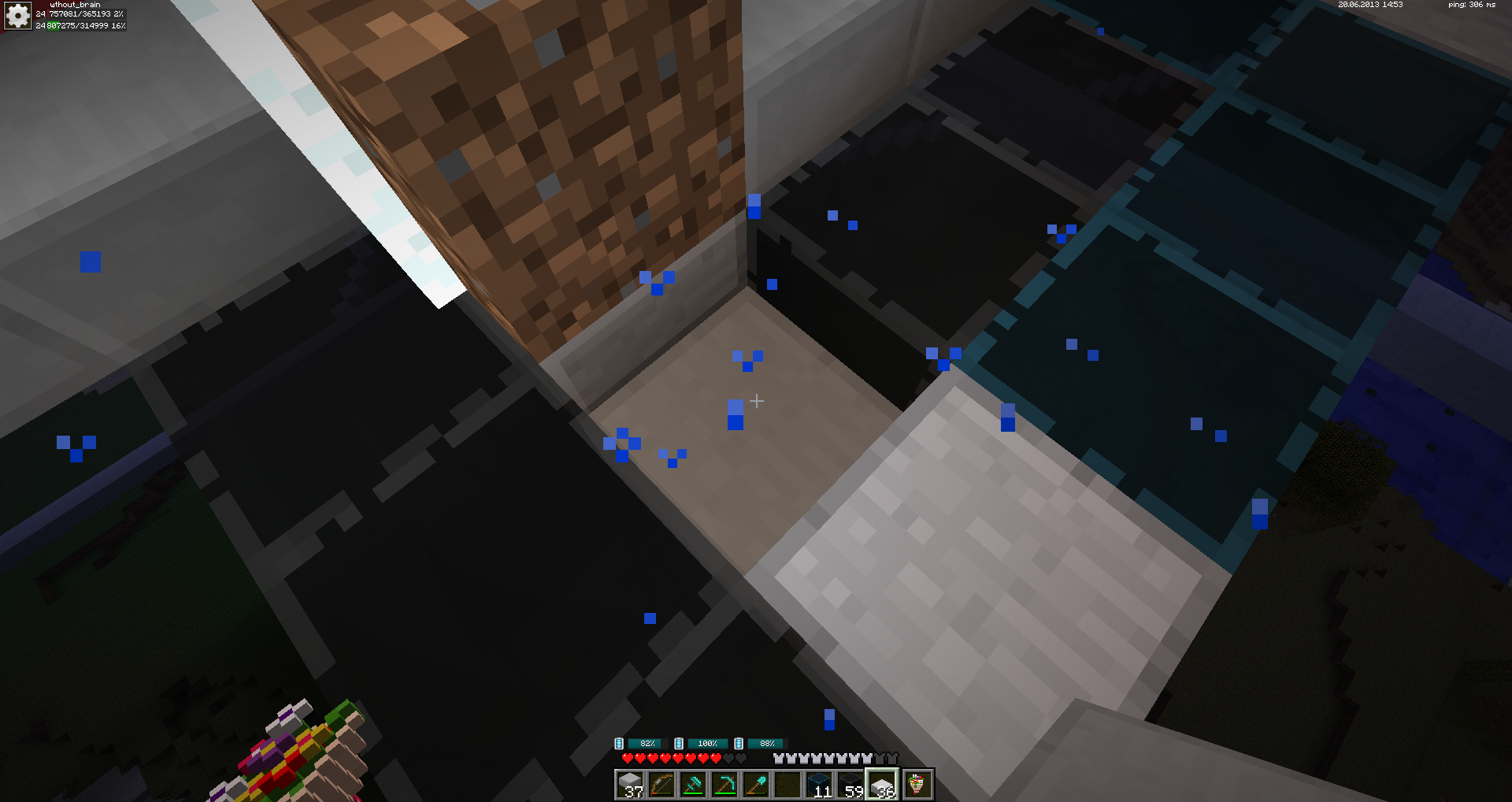 На полублок куда указывает прицел, нельзя поставить второй такой же никаким образом из-за защиты от столбов. Тыкать на боковые грани окрестных блоков бесполезно(тонировки, например). Раньше можно было воткнуть поставив на блок земли (установленный полублок смещался вниз), теперь такое не проходит.