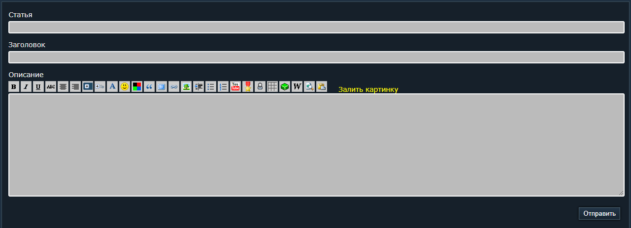 Для того, чтобы прикрепить статью необходимо нажать кнопку "Добавить абзац" и в поле "Статья" ввести название прикрепляемой статьи, после чего нажать Отправить: