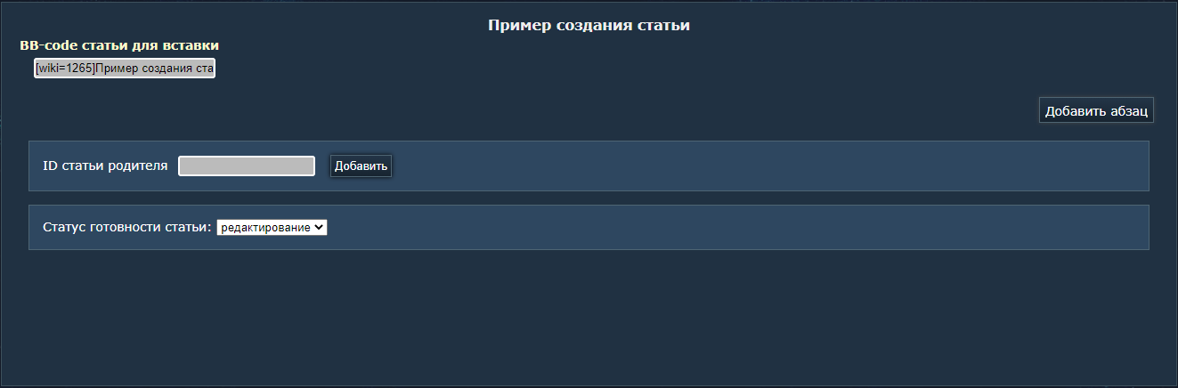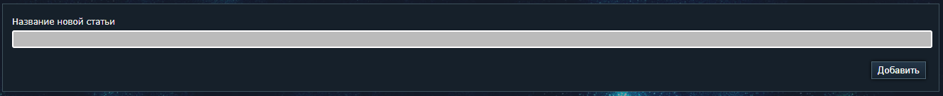 При нажатии откроется страница, на которой необходимо ввести название новой статьи и нажать кнопку "Добавить". Все последующее редактирование статьи будет происходить уже в ней самой.