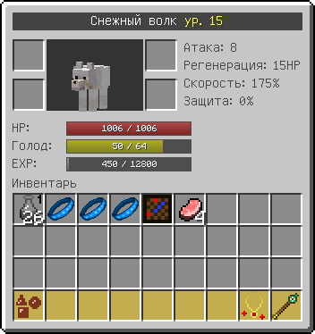 Голод - уровень сытости питомца, от которого зависят характеристики: скорость, атака. Для утоления голода питомец должен атаковать домашних животных: корову, овцу, свинью или курицу.